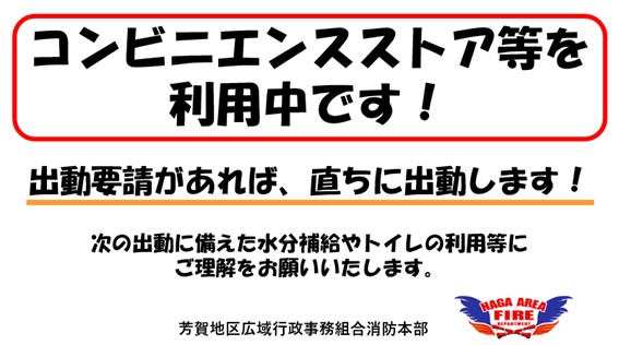 コンビニエンスストア等を利用する際は、感染防止の消毒を徹底するとともに、車両には必ず職員が待機し、いつでも出動できる態勢を整えていますのでご安心ください。