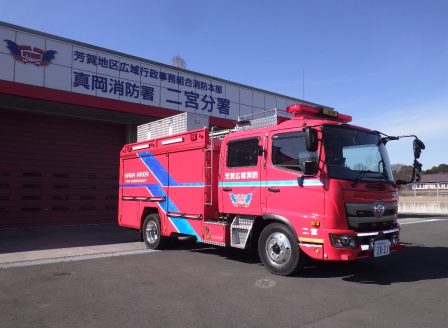 車体に1500リットルの水を積載しており、火災現場の近くで 消火作業を行う車両です。