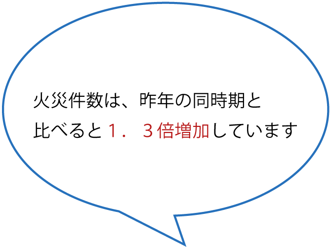 1月から3月15日までの火災件数は33件で、昨年1年間に発生した火災(65件)の半数に達しています。