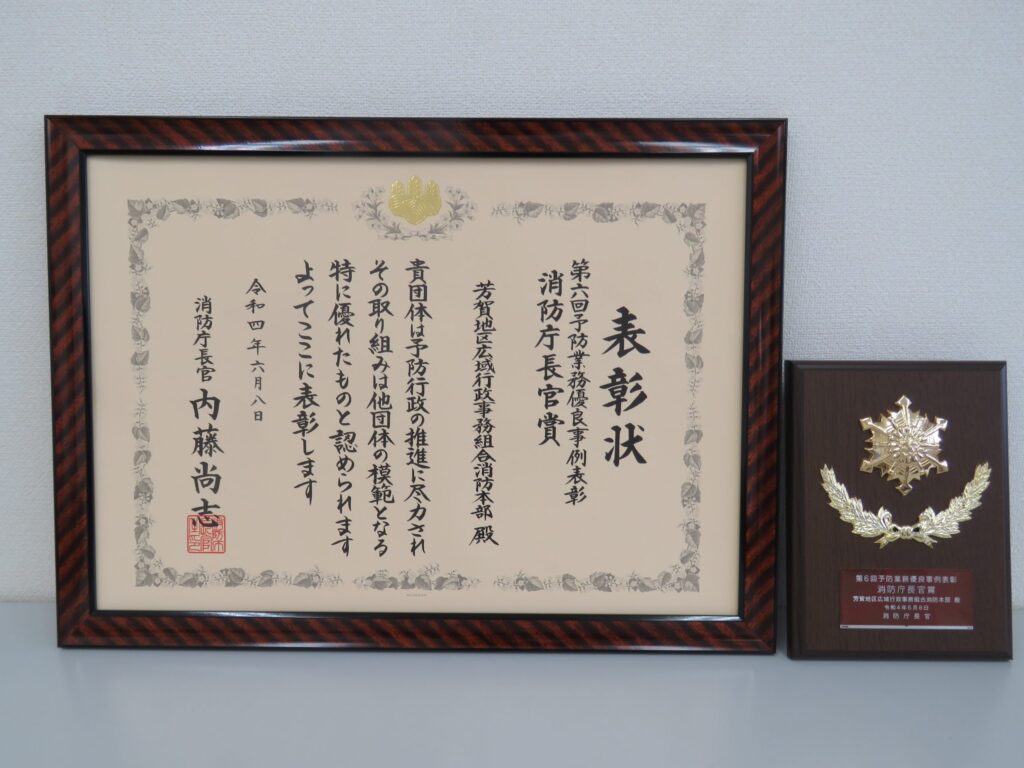 1 6月 2022 第6回予防業務優良事例表彰における消防庁長官賞の受賞について by ヨコタアカウント | posted in: 予防課 | 0 芳賀地区広域行政事務組合消防本部の火災調査における取組が、総務省消防庁が実施する「第6回予防業務優良事例表彰」の優良事例として評価され、消防庁長官賞を受賞しましたのでお知らせいたします。 1 受賞した取組 「アドバイザー制度を充実化、栃木県内の消防本部と連携を強化し、不明火災ゼロを達成!」 2 取組の内容 人材育成と栃木県内の消防本部(局)間の連携を強化するため2つの取組を実施 火災調査現場における積極的な実地研修、鑑識の実施 栃木県内の全消防本部(局)との合同鑑識、鑑定、研修の実施 成果令和3年における火災の原因が不明の火災をゼロにすることができ、さらに、栃木県内の全ての消防本部(局)と合同で鑑識、鑑定及び研修を行うことで、栃木県全体の火災調査の高度化を推進することが出来た。 事例の詳しい内容につきましてはこちらをご覧ください。アドバイザー制度を充実化、栃木県内の消防本部と連携を強化し、不明火災ゼロを達成! 他の消防局、消防本部の受賞事例につきましてはこちらをご覧ください。第6回予防業務優良事例表彰 3 表彰式及び事例発表 【 日時 】令和4年6月8日(水)13:00~13:30【 場所 】パシフィコ横浜会議センター神奈川県横浜市西区みなとみらい1丁目1-1 4 過去の受賞歴 令和2年 第4回予防業務優良事例表彰 優秀賞「他機関と連携を強化!不明火災ゼロへ向けた取り組み」 第6回予防業務優良事例表彰について 目的 消防庁長官が、各消防本部の予防業務の取組のうち、他団体の模範となる優れたものについて当該消防本部を表彰し、予防部門のモチベーション向上を図るとともに、広く全国に紹介することにより、予防行政の意義や重要性を広く周知し、各消防本部の業務改善に資することを目的とする。表彰の対象者 予防業務の取組のうち他団体の模範となる優れたものを行っている消防本部。募集内容 令和3年1月1日から令和3年12月31日までの間に各消防本部で力を入れた予防業務の取組を中心に他団体の模範となる優れた事例(1消防本部1事例まで)。応募状況及び選考結果 応募46団体中、当本部を含む5団体が「消防庁長官賞」、10団体が「優秀賞」消防庁長官賞 熊本市消防局 神戸市消防局 名古屋市消防局 (5団体) 芳賀地区広域行政事務組合消防本部 横浜市消防局優 秀 賞 大津市消防局 岡崎市消防本部 岡山市消防局 春日井市消防本部 (10団体) 鹿沼市消防本部 泉州南広域消防本部 仙台市消防局 東京消防庁 富山市消防局 東根市消防本部審査方法一次審査 予防業務優良事例表彰事務局(消防庁予防課)二次審査 選考委員 委員長 小林 恭一 東京理科大学総合研究院教授 委員 重川 希志衣 常葉大学大学院環境防災研究科教授 関澤 愛 東京理科大学総合研究院教授 吉田 敏治 全国消防長会事務総長 小宮 大一郎 消防庁次長 鈴木 康幸 消防大学校消防研究センター所長 PDFデータはこちら